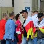 Осетинские болельщики, приехавшие в Москву из Южной и Северной Осетии поддержать Мурата Гассиева в финале Всемирной суперсерии, с национальными флагами и другой атрибутикой подтягиваются к спорткомплексу «Олимпийский».